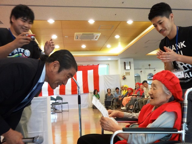 式典ではご来賓の方々にお祝いのお言葉をいただき、ご長寿の表彰をさせていただきました。