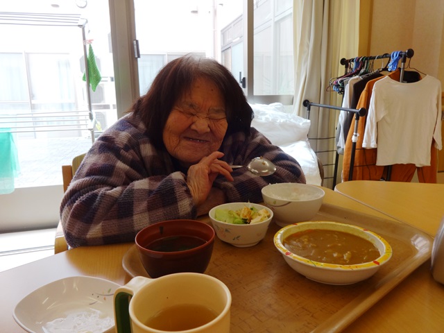 今回ご紹介するのは、カレー作りとすき焼き作りです。これまで、おやつを一緒につくるなどの行事はありましたが、昼食自体を一緒につくるのはあまりない試みでした。実際に作りはじめると、慣れない若い職員よりも手際がよく、終始楽しく料理をされていました。