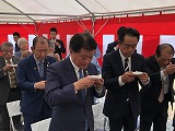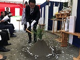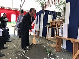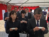 来賓として土浦市長 中川 清 様をはじめ、五頭副市長、田中3丁目遠藤地区長、小松崎副地区長をお招きし、法人役職員、設計・施工会社と共に工事の安全を祈願しました。