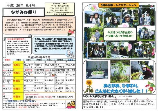 月間行事予定や前月の活動記録を掲載したお便りです。 毎月月末にお渡ししております。