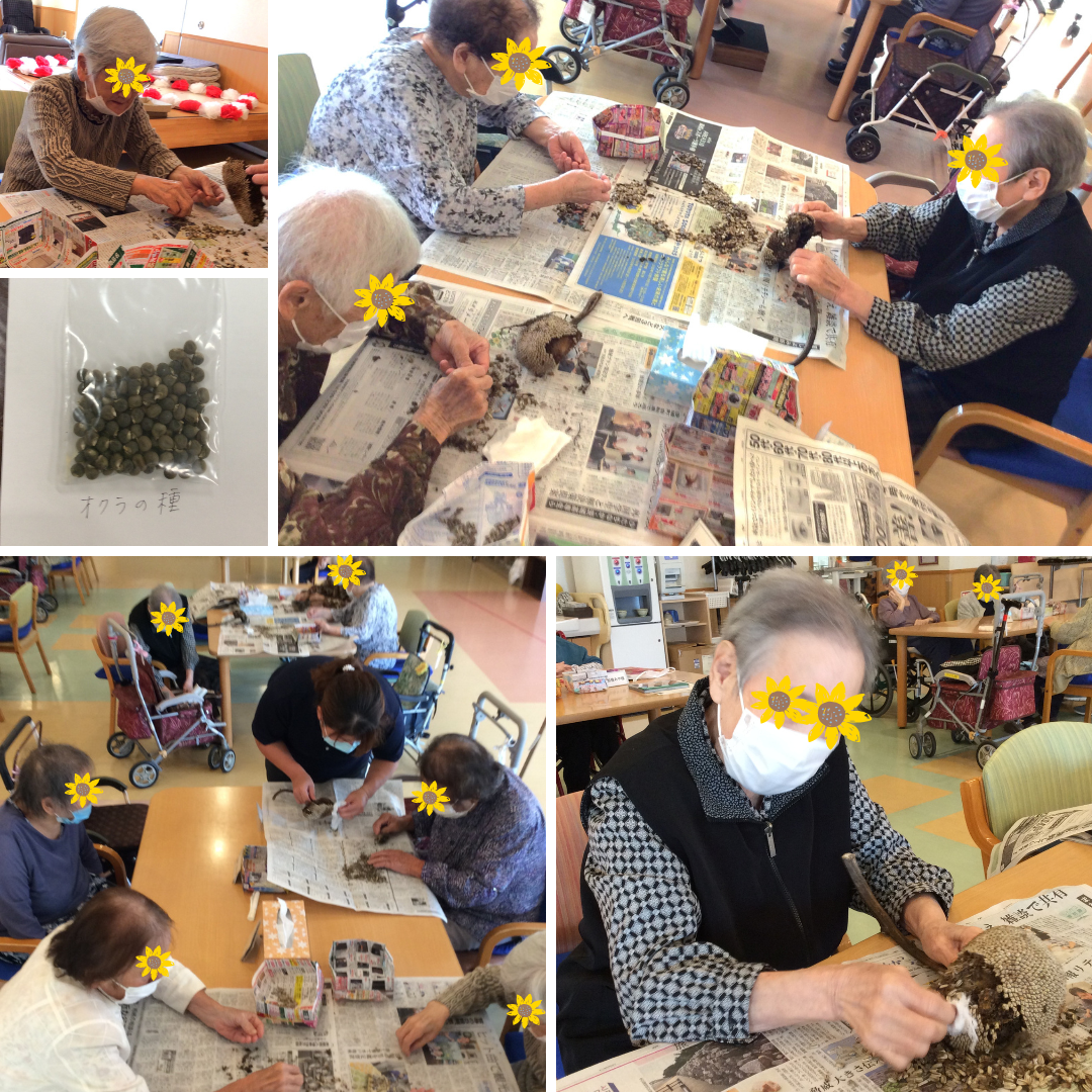 ちなみに…毎日収穫できたオクラも種を採ることが出来ました。こちらは初めての方も多かったので、ご利用者様も種を持ち帰って「来年蒔いてみるわ♡」と喜んでくださいました。