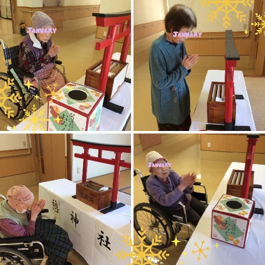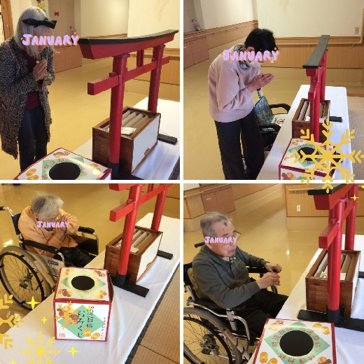 明けましておめでとうございます。 2026年がスタートしました★ お正月は施設での正月式や、参拝とおみくじ引きを行いました。 毎年恒例のお獅子に頭をかんで頂き、皆さん手拍子をしてノンアルコールで乾杯しています😊 他にもばらユニットでの作品作りや、飾り付けを行いお正月らしい年明けとなりました。 今年もばらユニットらしく元気に過ごしてまいります。 どうぞよろしくお願いいたします😊