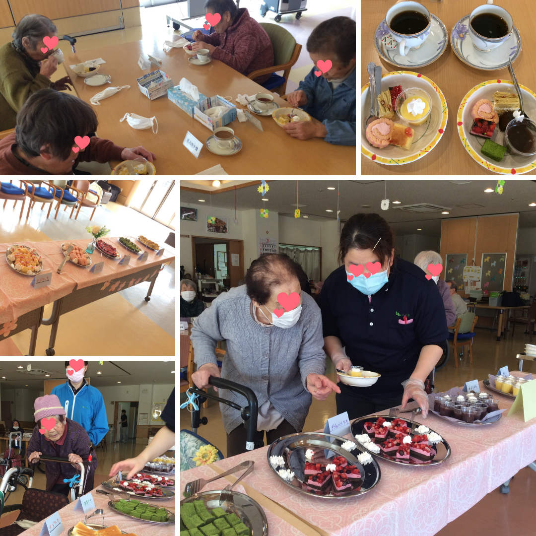 少しずつ暖かい日が増えてきた3月。デイサービス憩いの里では初めての企画『ケーキバイキング』を行いました。