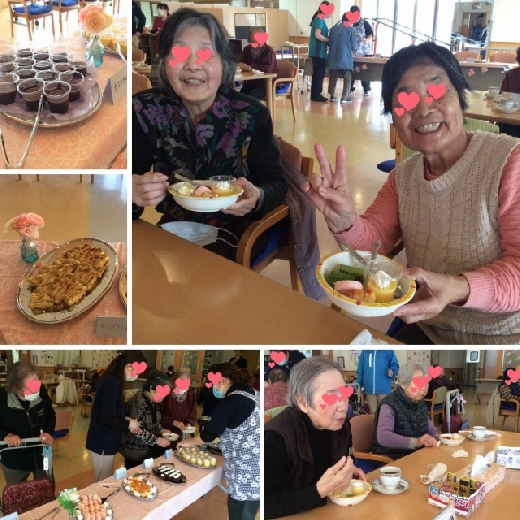 いつもと違う雰囲気で笑顔いっぱいのご利用者様(*^-^*) 私たち職員もつられて笑顔になってしまいます。おなかも気持ちも大満足のケーキバイキングとなりました。