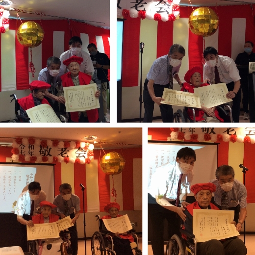 式典では、米寿、白寿、百寿、百一歳、そして、最高齢の107歳と108歳の入居者様のお祝いをしました。また、同じ法人の保育園の子供たちからのビデオメッセージもあり和やかな雰囲気に🌞