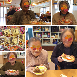 口の周りにクリームが付いていたり手も汚れてしまったりする方もいましたが、みんな美味しくてペロッっと食べてしまいました。自宅ではなかなか食べられないものもあったので、皆さん大満足のおやつバイキングとなりました。