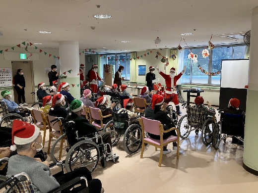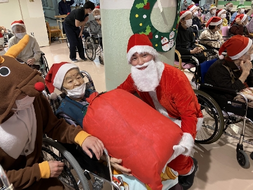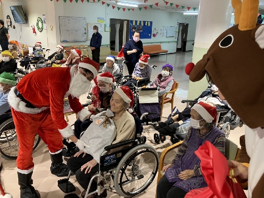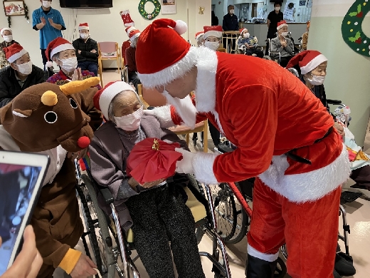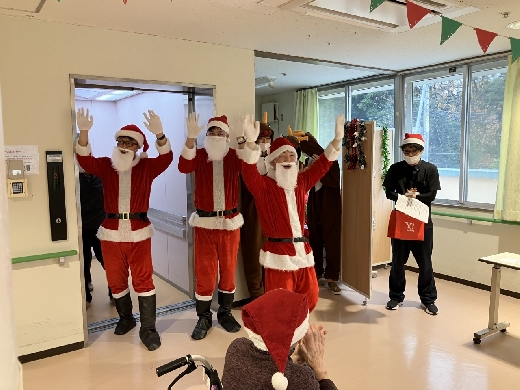 こんにちは飛羽ノ園です。 12/21飛羽ノ園ではクリスマス会を開催🎅 従来型にはサンタ3人衆が入居者に皆さんにプレゼントを配りました。