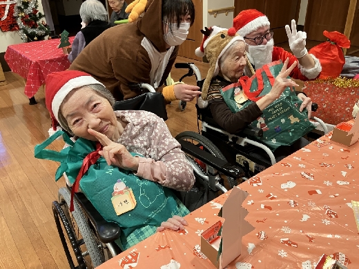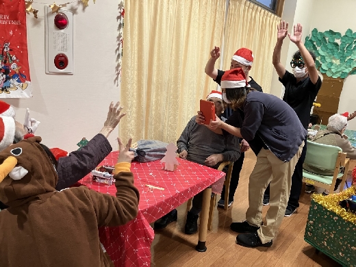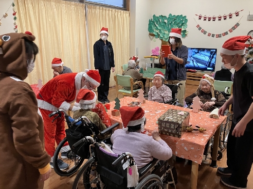こんにちは飛羽ノ園・とわです。 12/21クリスマス会を開催🎅 ユニット型にサンタさんとトナカイさんが来園してプレゼントを配ってくれました。 みんないい笑顔( ´艸`)